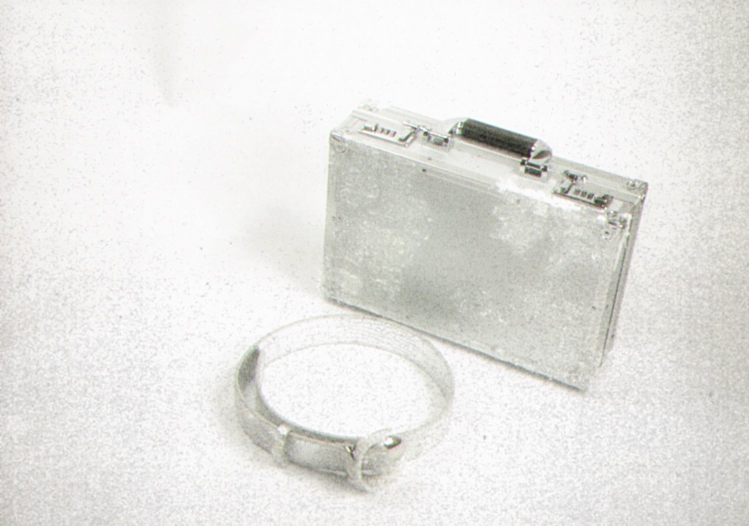 This premium aluminum frame briefcase, is the perfect bag for fall/winter. It takes wearable art to a new level with its hyper-realisitic ice and snow that we've been developing for the entire year. It features a decadent grey interior and  two combination locks to keep all your essentials safe and secure. It can be worn cross body  or as a backpack, by using the steel veil scarf.