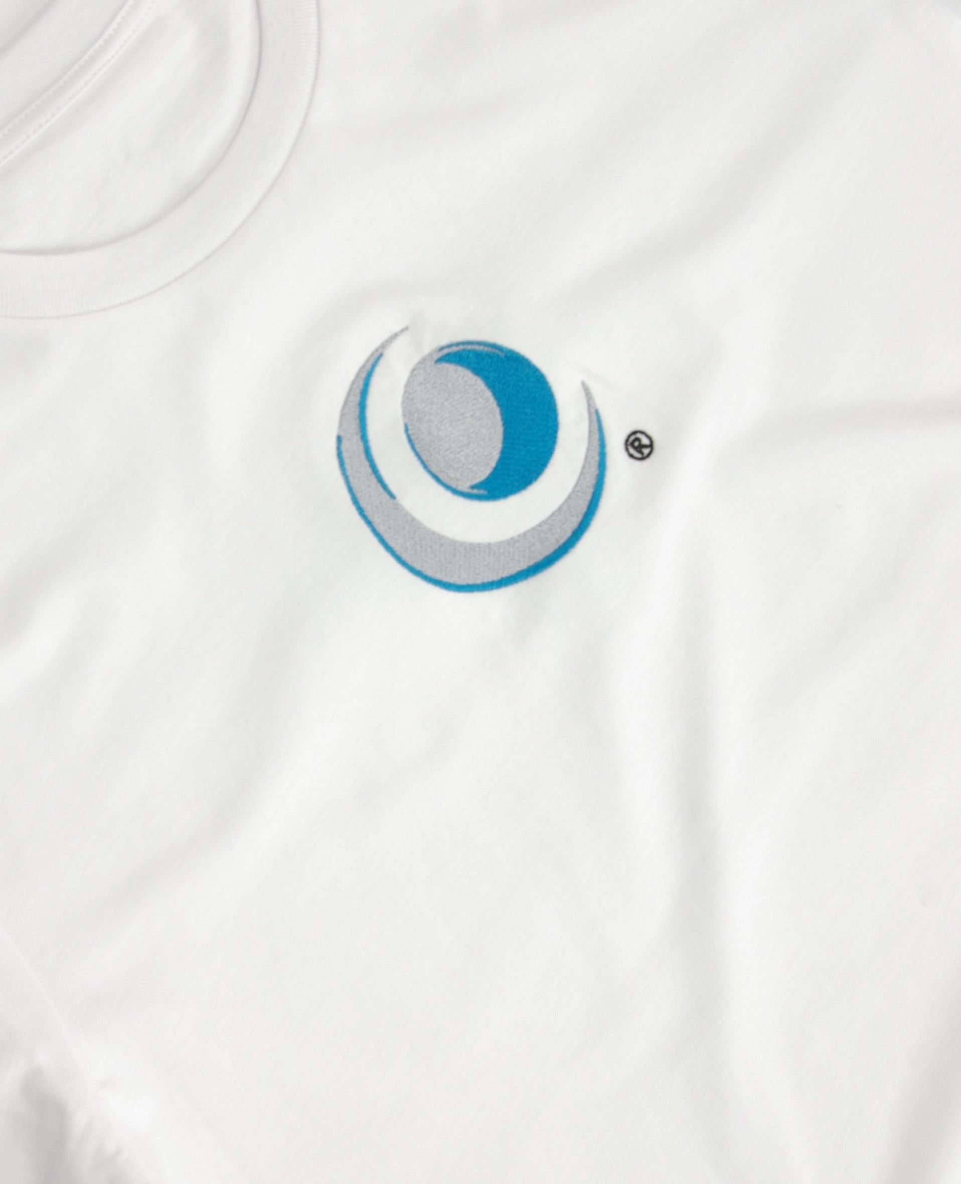 Inspired by our arctic crescent chthonic belt, this cool and soft 100% organic ring-spun cotton tee features bright, futuristic embroidery that is reinforced to ensure quality and wash durability. The ring-spun cotton ensures fibers stay intact and flush for that soft yet sturdy 90s/y2k streetwear tee feel and fit. We recommend ordering a size up for a loose fit that pairs well with blue jeans for a simple and clean look or pair with oversized flared pants for a Harajuku rave-wear look.